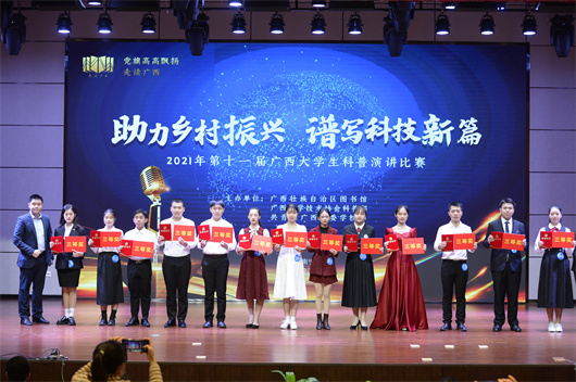 广西大学生科普演讲比赛为广西青年大学生们搭建了一个展现自我、提升自我的舞台,通过参加比赛,我市当代青年大学生展现出良好的精神风貌和竞技风采,也表达了立志成为家乡建设、乡村振兴接班人的坚定决心。
