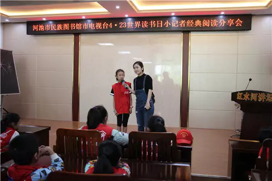 4月23日上午,河池市电视台小记者训练营40余名小记者到河池市民族图书馆参观,体验科技与阅读的结合。