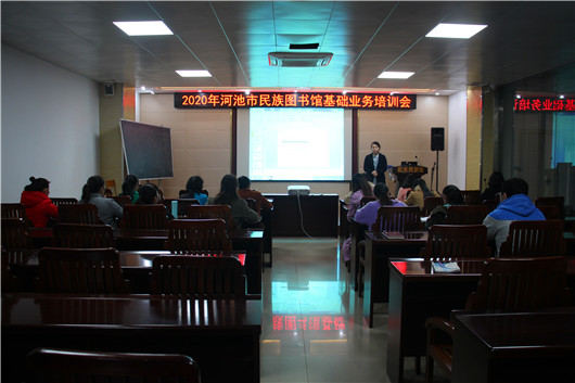 为推进图书馆公共事业发展专业化水平,提高工作人员对图书分类与管理能力。1月8日,我馆在二楼多媒体功能室召开2020年图书馆基础业务知识培训会。培训会由馆长谭荣玲主持,全馆职工共计25人参加培训。采编部负责人黄婵琴老师为全馆职工上了一堂生动实用的培训课。