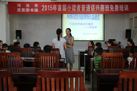 为了进一步丰富小读者的暑期文化生活,提高小读者的口语表达能力,河池市民族图书馆于7月20日到到7月24日举办暑假小读者普通话培训班活动。 培训在我馆二楼多媒体教室举行,为了让小读者···
