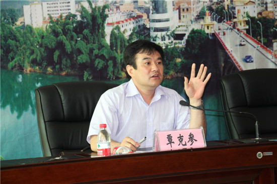 本次讲座特邀主讲嘉宾为广西环江毛南族自治县委常委、宣传部部长、政府副县长覃克参,讲座开讲前先开展了“美丽环江、清洁乡村”活动山歌集赠送仪式,由覃部长及市社科联主席周龙及陆晟平领导现场向县各单位代表赠送山歌集500多册。接下来覃部长结合什么是世界自然遗产,申报世界自然遗产所需要具备的条件及申报程序,环江申报世界自然遗产目前的进度及所遇到的问题等方面深入探讨了环江县域的经济社会发展,特别分析了成功申报“世界自然遗产”带来环江的好处。最后覃部长动员环江人团结起来,共同为环江喀斯特成功申报世界自然遗产而努力,做一些力所能及的事,比如利用赠送的山歌集宣传环江的美……