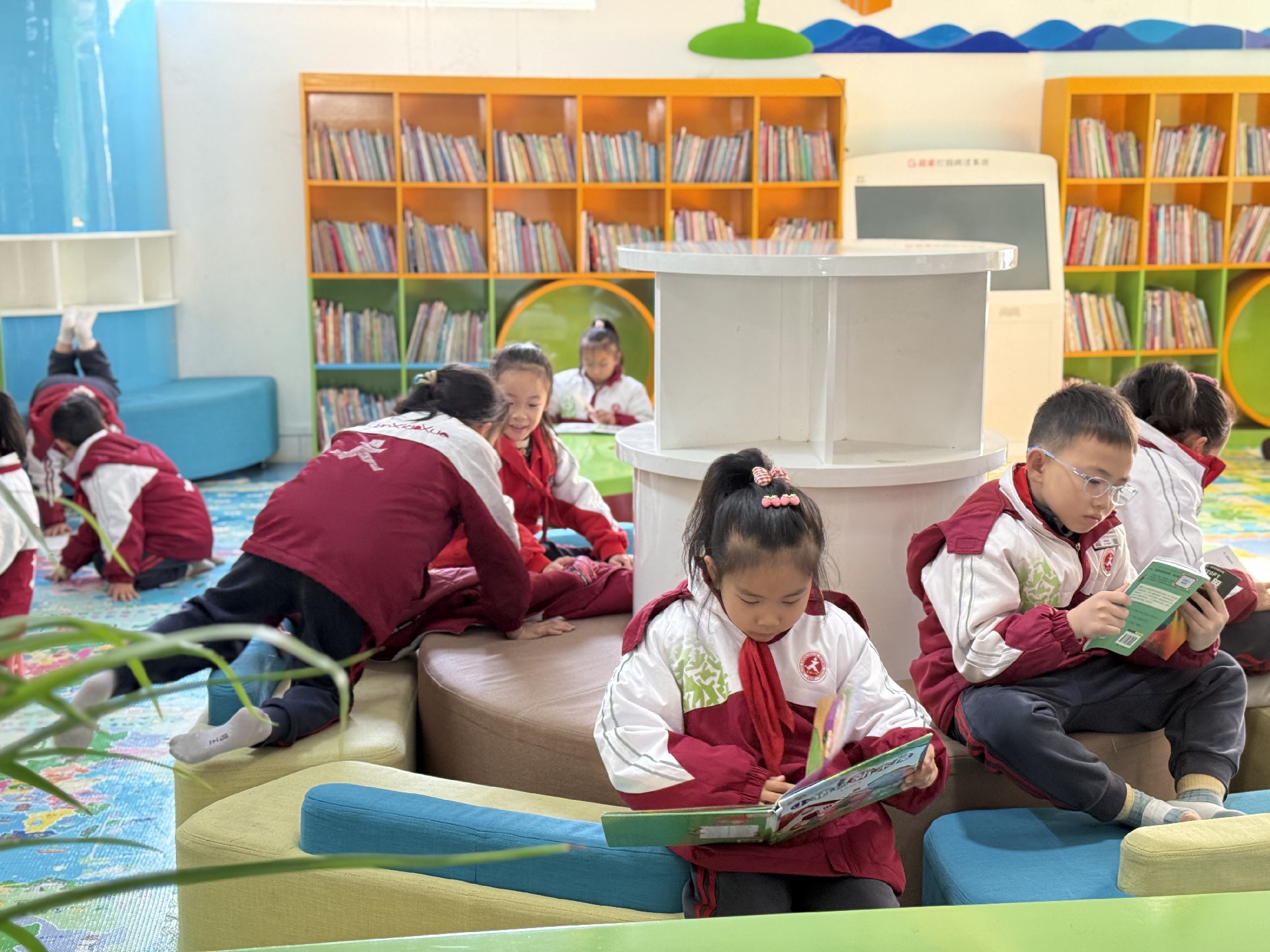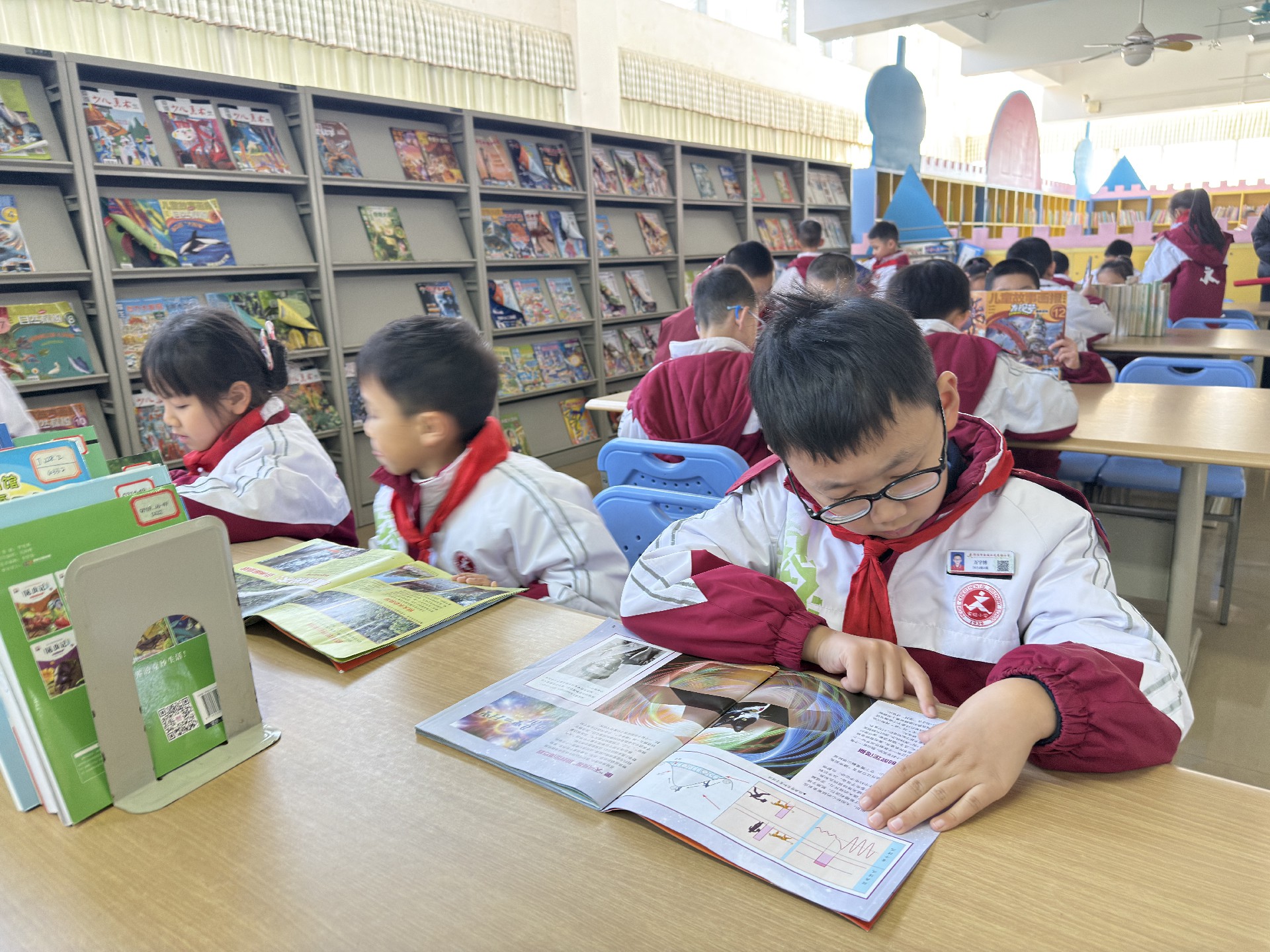 在图书馆工作人员的带领下,孩子们有序参观了一楼大厅、报刊阅览室、地方文献阅览室等功能区域。随后,在二楼读者自区,工作人员详细讲解了图书检索机、图书消毒机及自助借还机的使用方法,并现场演示如何查询图书状态、进行图书消毒,以及使用读者证完成借书、还书的全流程。孩子们也亲手体验了图书消毒与借还书操作,掌握了图书馆自助服务的使用技能。